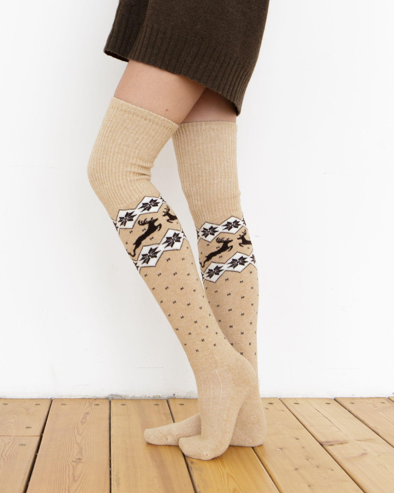 Теплые чулки из монгольской шерсти бежевые с рисунком