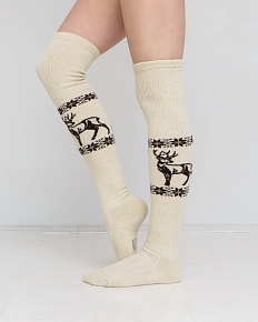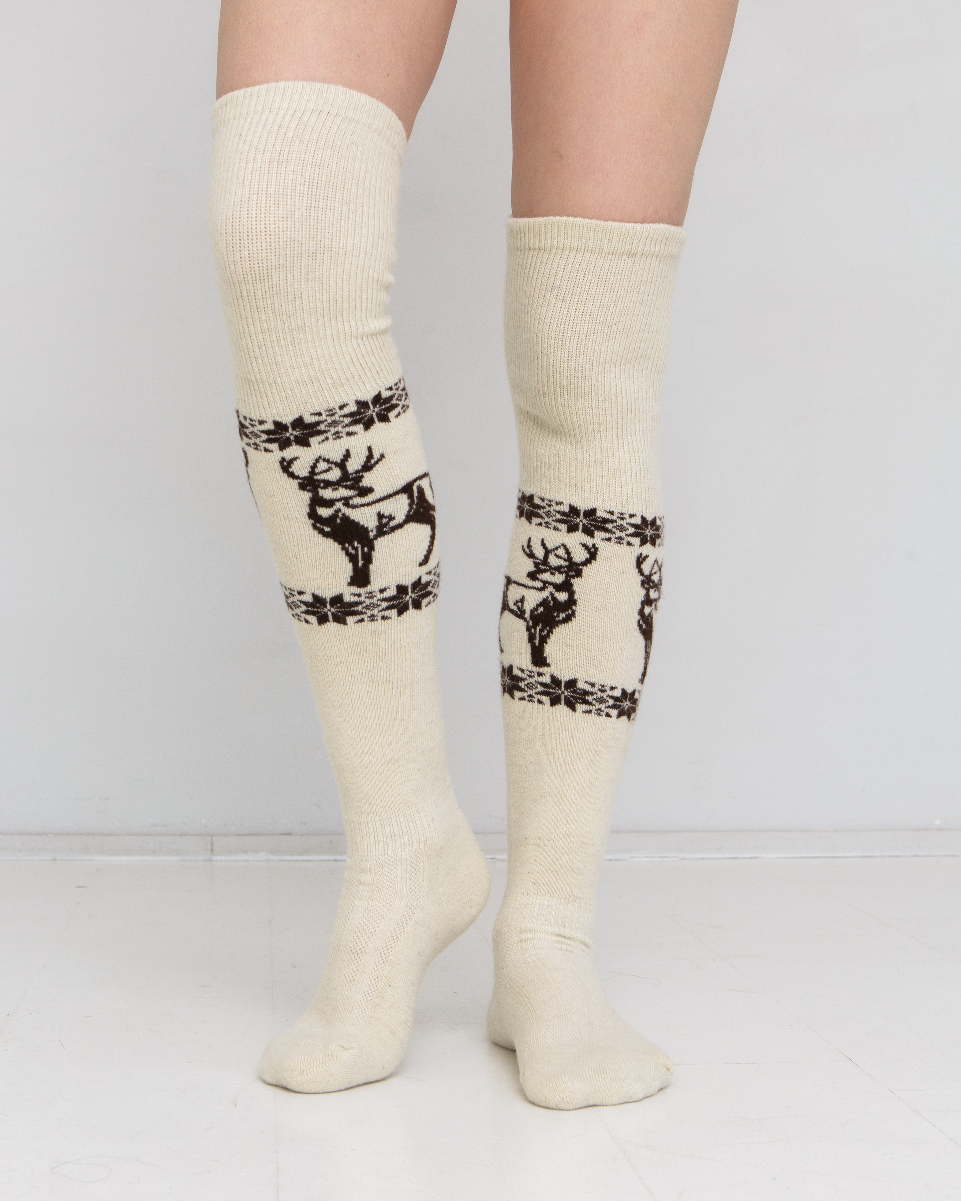 Теплые чулки из 100% шерсти с рисунком бежевые