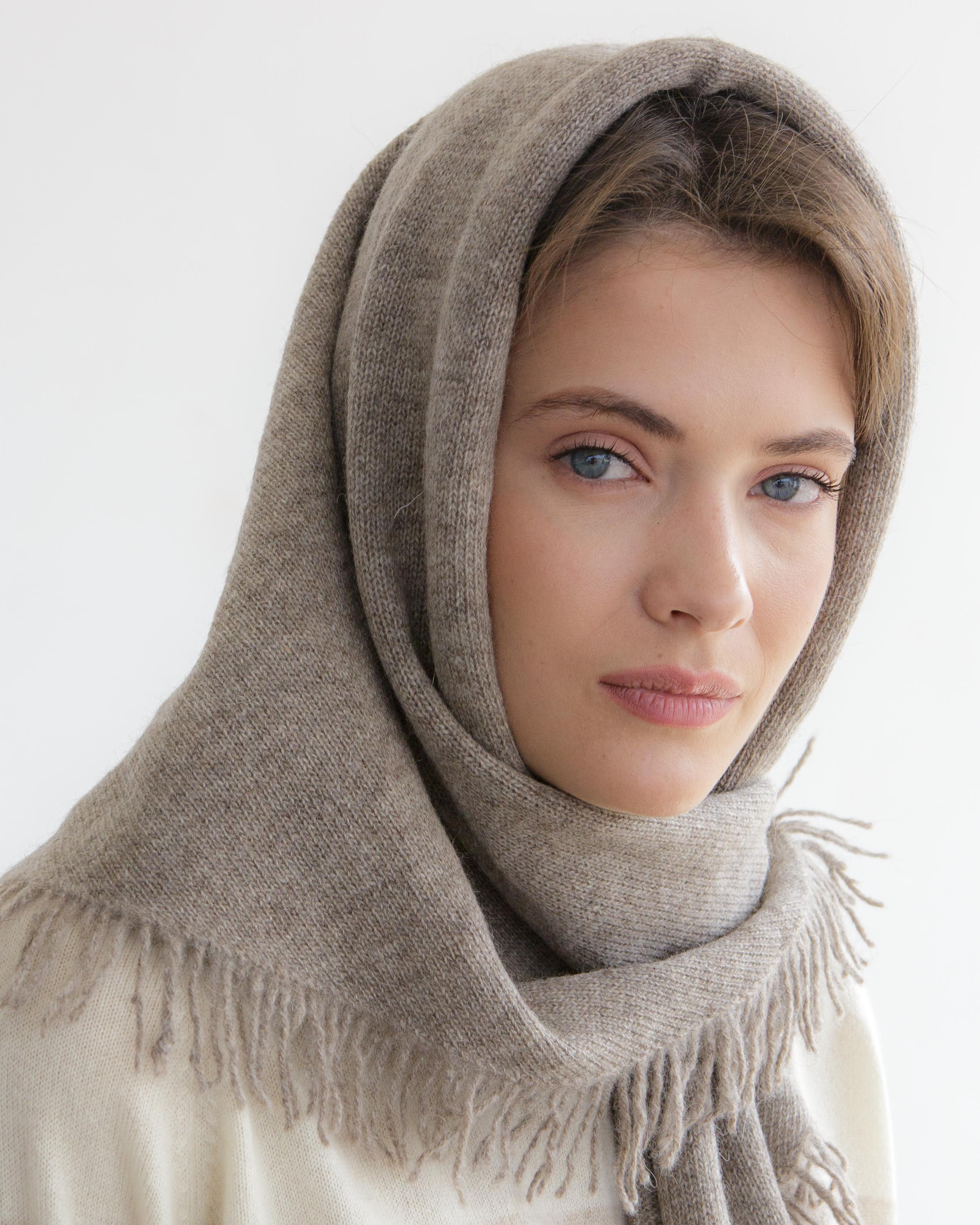 Удачное приобретение. Прекрасно драпируется на шее, хорошо ложится на голову, приятно накинуть на плечи. Немного колется, но думаю, что после легкой стирки это пройдет. Универсальная, теплая, качественная косынка. |