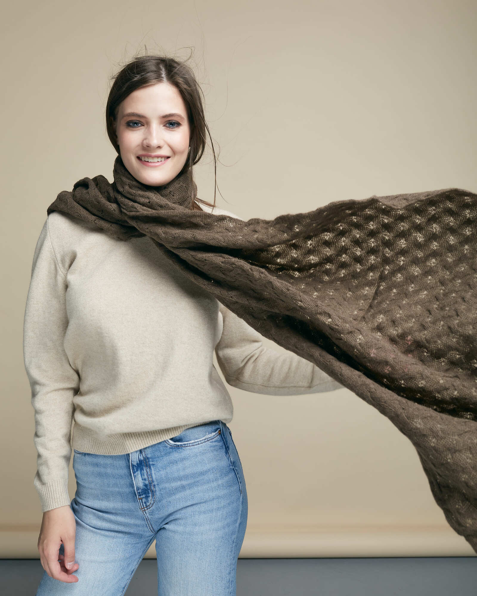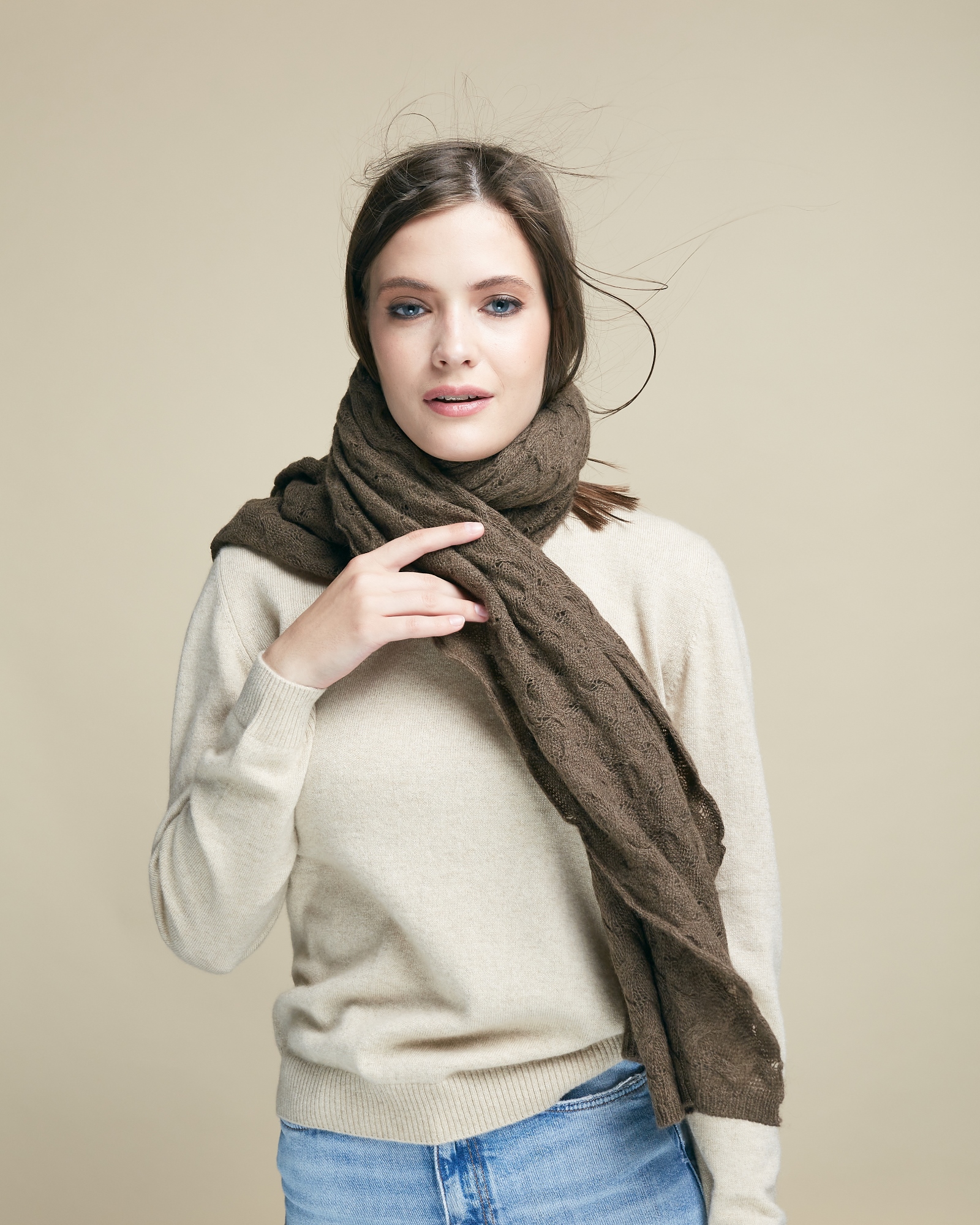 Палантин из пуха яка 15007b коричневый