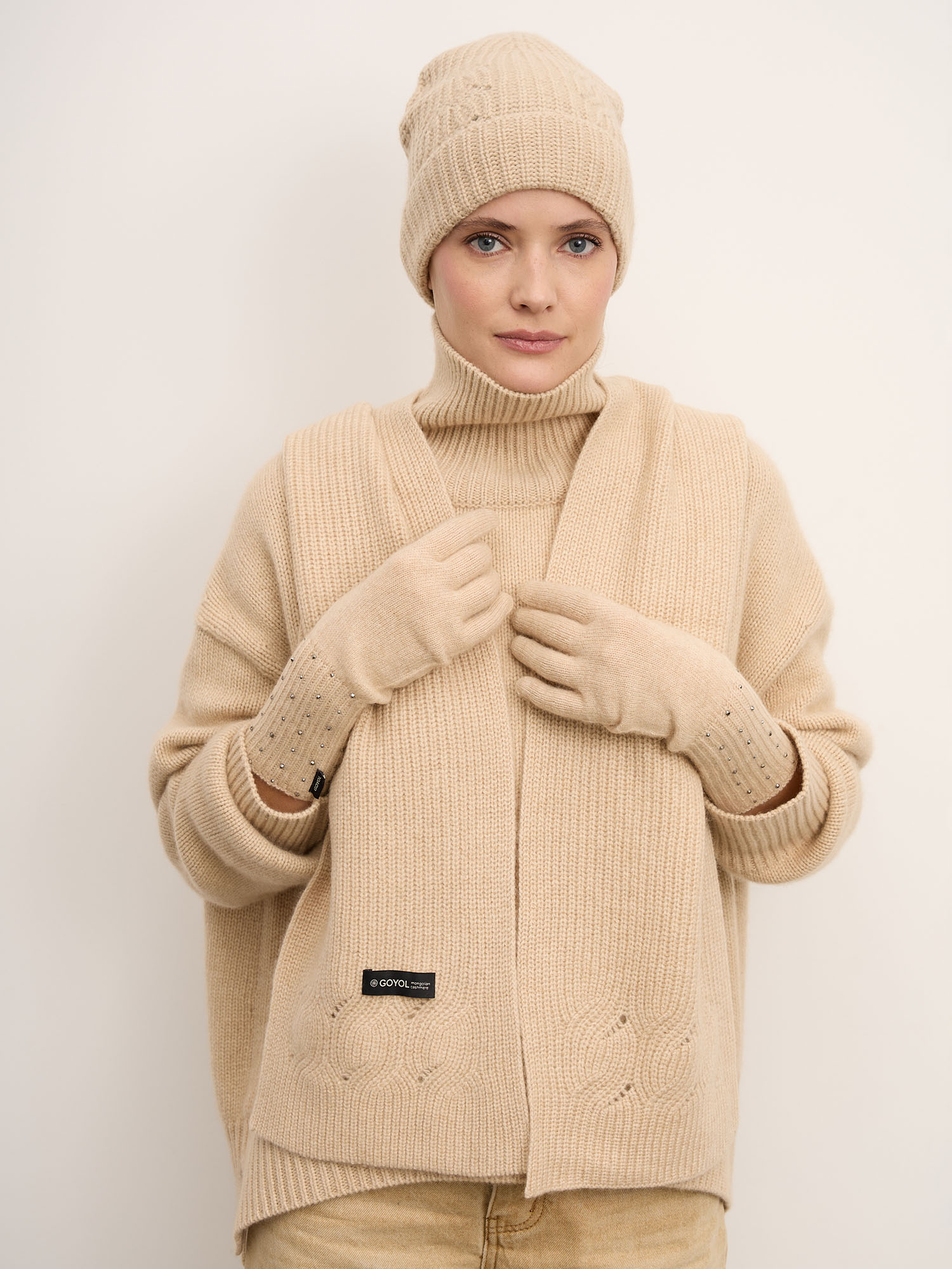 100% натуральный кашемир премиального качества — лёгкий, мягкий и тёплый. Волокно отличается высокой воздухопроницаемостью, деликатной текстурой и способностью отлично сохранять тепло, обеспечивая комфорт при носке.