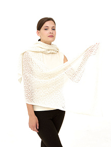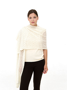 Модель выполнена в свободной форме с выразительной фактурной вязкой, создающей объёмную текстуру. Пластичная структура материала позволяет палантину красиво струиться и формировать мягкие складки.