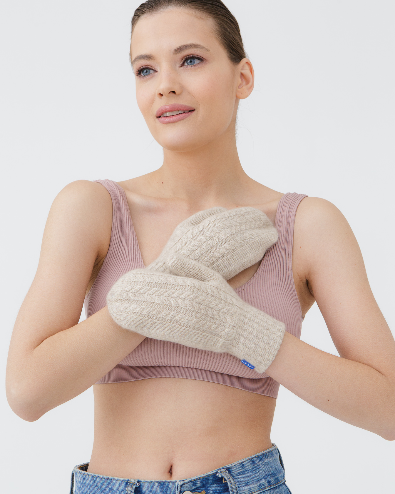 Варежки из кашемира 30120 бежевые