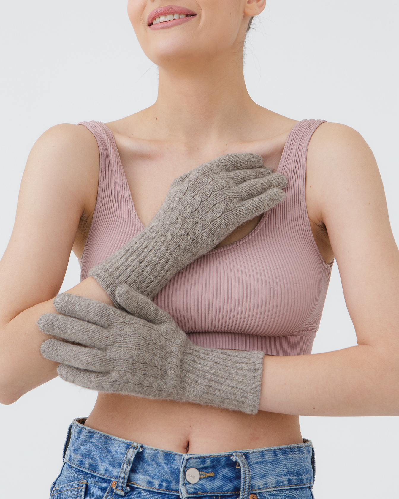 Модель выполнена с акцентом на классический узор «косы», который создаёт объёмную текстуру и добавляет изделию изысканности. Удлинённая манжета делает дизайн не только стильным, но и функциональным.