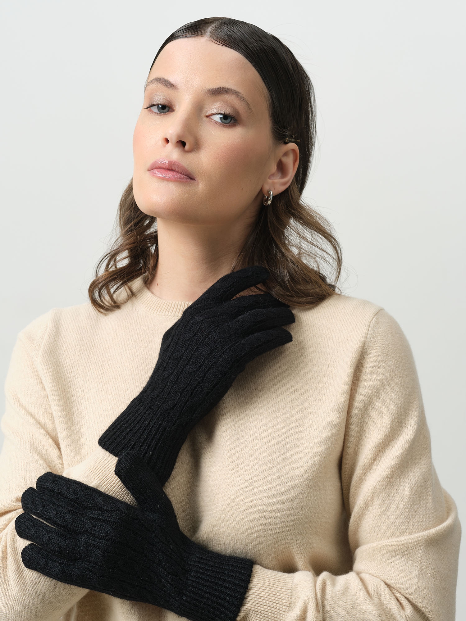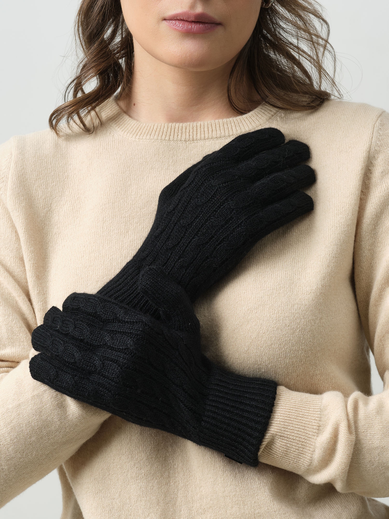 Чёрные кашемировые перчатки с выразительной вязкой — это стильный и практичный аксессуар, который сочетает в себе тепло и элегантность. Рельефный узор придаёт модели глубину и характер, делая её акцентной деталью даже в сдержанном образе. Идеальный выбор для холодного сезона.