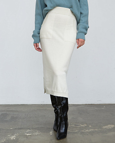 Эластичный пояс для комфортной посадки, аккуратный боковой разрез для свободы движений, гладкая трикотажная вязка, сохраняющая форму изделия.