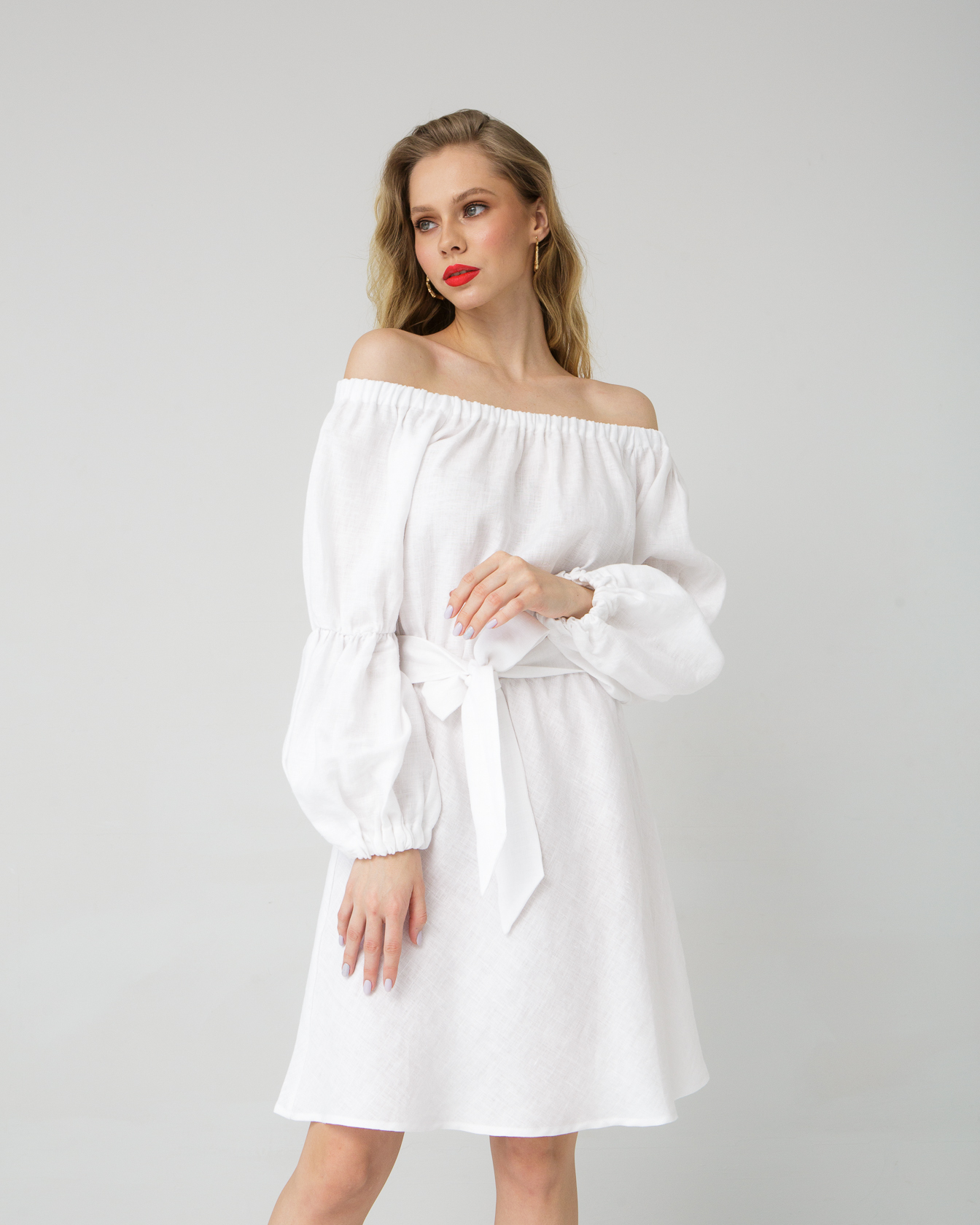 Женское льняное платье белого цвета — легкая и романтичная модель, идеально подходящая для летнего гардероба. Воздушный силуэт и натуральная ткань создают ощущение свободы и комфорта, а открытая линия плеч добавляет образу женственности и утонченности. Платье прекрасно подойдет для отдыха, прогулок и особых летних моментов.