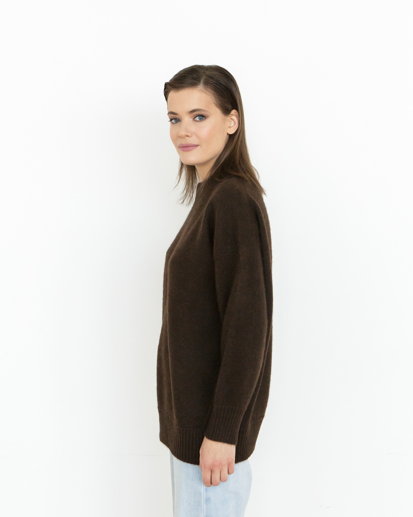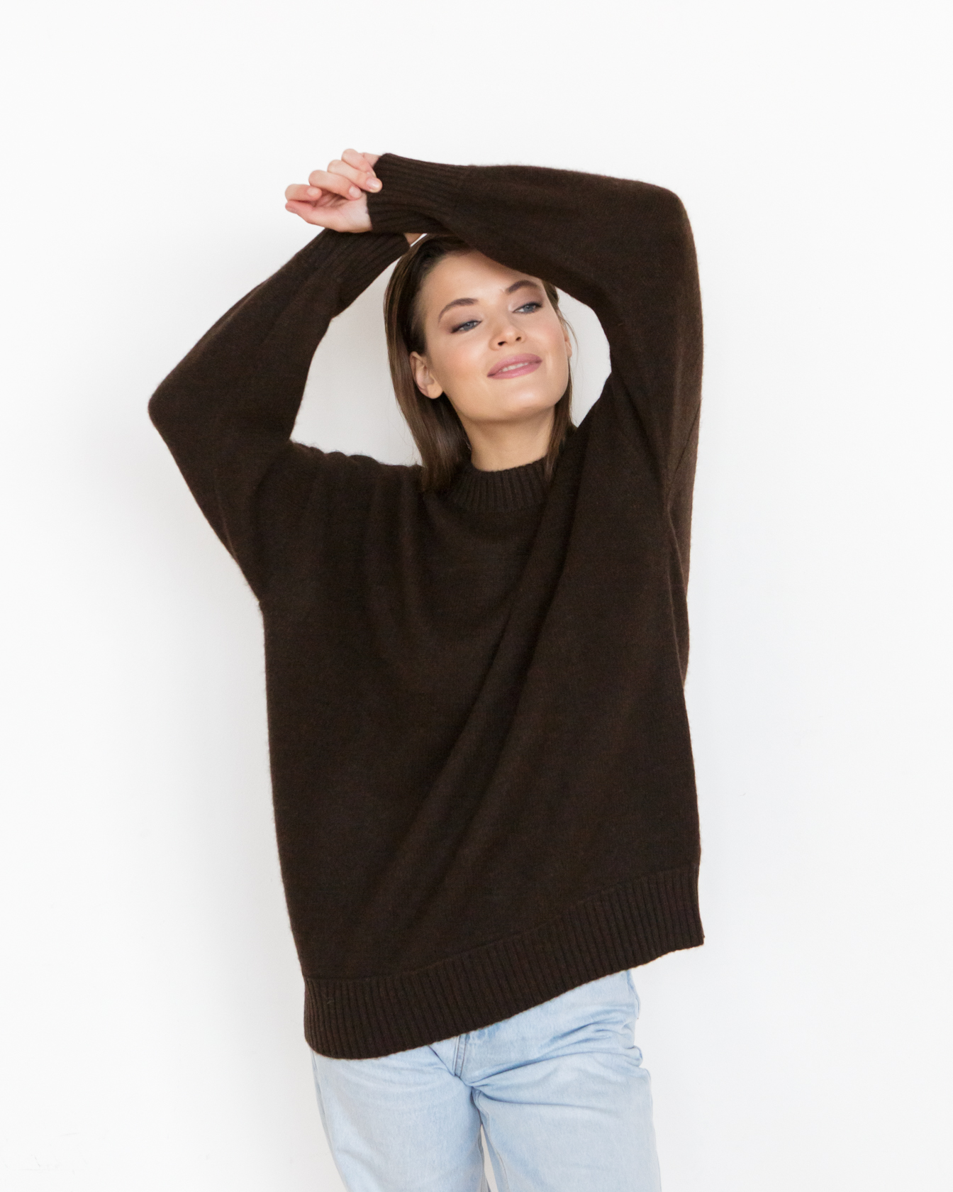 Модель выполнена в минималистичном стиле с круглой горловиной и длинными рукавами. Свободный крой подчёркивает современный силуэт и обеспечивает удобство в повседневной носке.