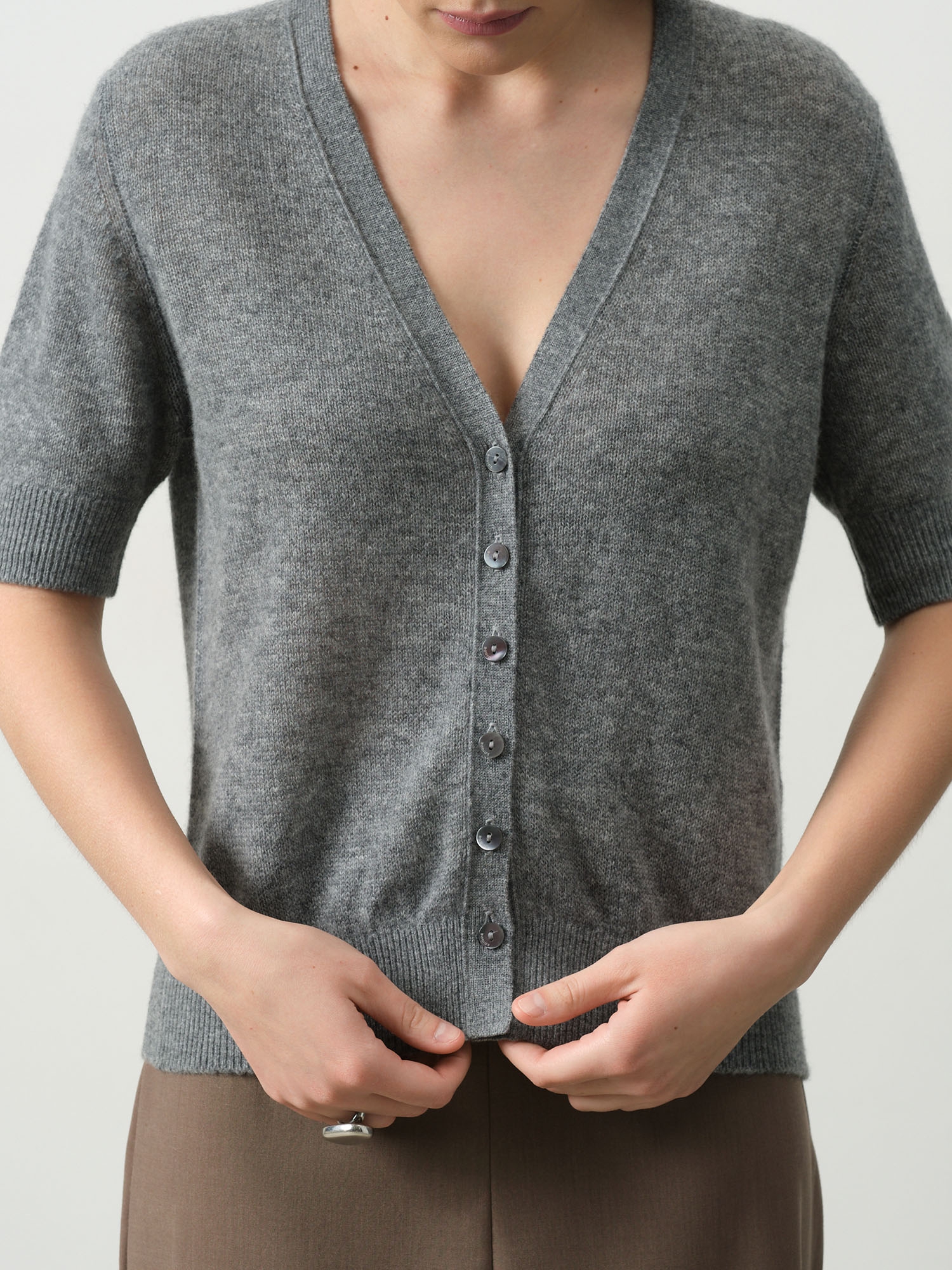 Стильный кардиган из 100% натурального кашемира в благородном оттенке графит – безупречное воплощение элегантности и комфорта для современной женщины. Этот универсальный предмет гардероба отличается исключительным качеством материала, обеспечивающим невесомость и мягкость при носке.